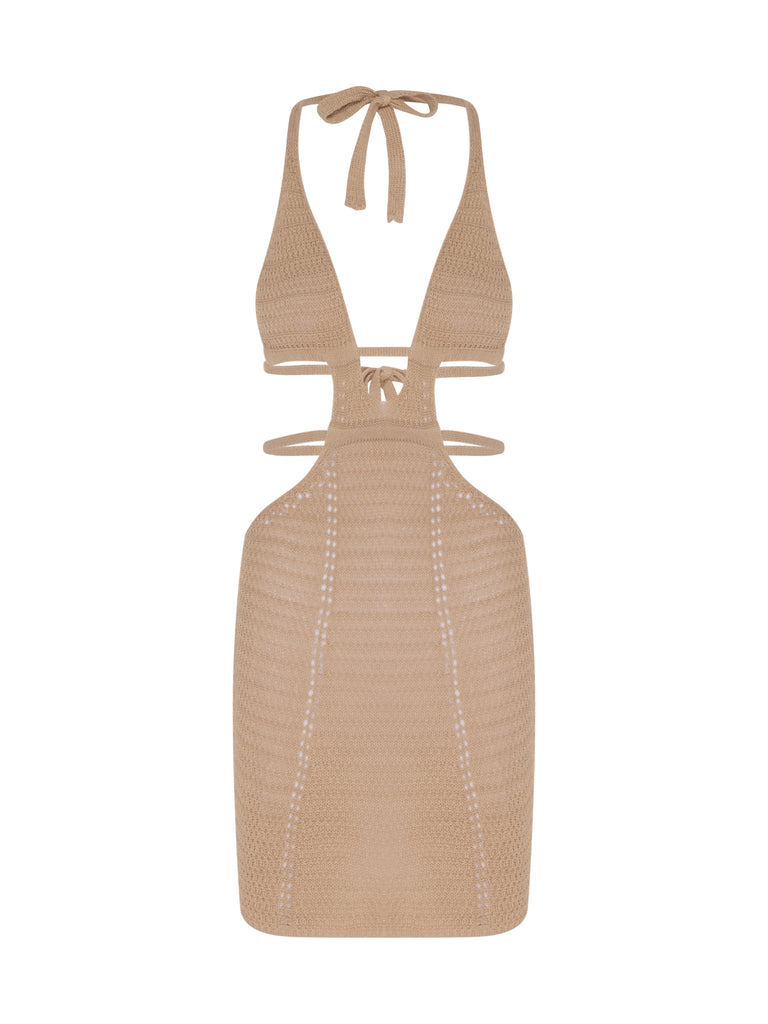 فستان إريكا القصير مزيج مثالي من الأناقة والتنوع، يتميز بتصميم محبوك رائع بتفاصيل مفتوحة. تتميز هذه القطعة الأنيقة برباط قابل للتعديل خلف الرقبة والظهر، مما يتيح لكِ تعديل المقاس حسب راحتكِ. مثالي للارتداء بمفرده لإطلالة نهارية أنيقة أو كغطاء عصري على الشاطئ، حيث يتحول هذا الفستان بسلاسة من النزهات غير الرسمية إلى التجمعات المريحة. تألقي بأناقة بسيطة مع فستان إريكا القصير، إضافة لا غنى عنها لخزانة ملابسكِ!