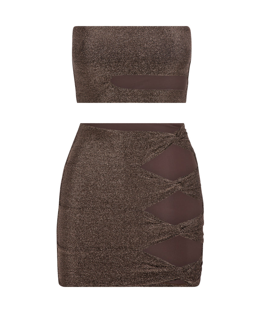 طقم سابرينا مزيجٌ رائعٌ من الأناقة والتنوع، يتألف من تنورة أنيقة بفتحات وبلوزة متناسقة. متوفر بقماش بنيّ وكحليّ لامع يلتقط الضوء بشكلٍ رائع، بالإضافة إلى خيارات كلاسيكية باللونين الأسود والأبيض، ما يجعله مثاليًا لأي مناسبة. يمكن ارتداء كل قطعة على حدة، مما يتيح خياراتٍ لا حصر لها من الإطلالة، سواءً كنتِ تبحثين عن إطلالة أنيقة أو إطلالة مميزة لقضاء أمسية مميزة. حسّني خزانة ملابسكِ مع طقم سابرينا، وأظهري أناقتكِ أينما ذهبتِ!