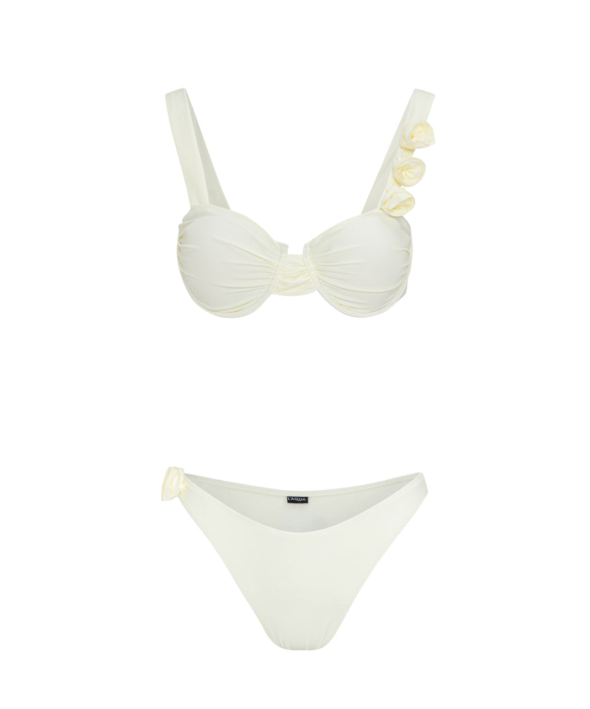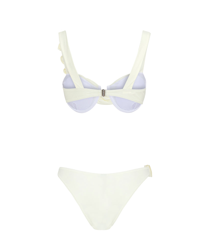 Step into sophistication with the Daisy Bikini, featuring a chic balconette style that exudes class. With thicker straps for added support and comfort, this bikini is beautifully adorned with three rose details, elevating your swimwear game.