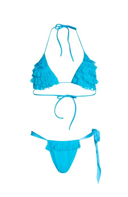 This Blossom Triangle Bikini is made from a soft and luxurious fabric, featuring lace frills and an adjustable bottom for a snug fit. The vibrant neon hue makes a bold statement, perfect for days out by the pool or beach.